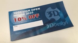 本日、ご来店いただきましたお客様が 今年の3DDesignショールームで開催しましたOPEN HOUSEのイベントの 抽選会でゲットされたクーポン券をお持ち頂きまして 当社の製品をお得にご購入いただきました。 6月に実施 …